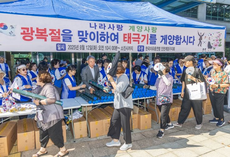 윤환 구청장은 “광복 80주년을 맞아 태극기를 통해 우리 구민 모두가 나라 사랑의 마음을 다시 한번 확인하는 뜻깊은 시간이 되길 바란다.”라며 “이번 나눔 행사가 계양구민들의 자발적인 태극기 게양 문화를 촉진하는 계기가 되기를 기대한다.”라고 밝혔다.