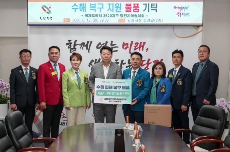 (도민방송=충남) 문성호기자 | 국제로타리 3620지구 당진지역협의회는 12일 당진시청에서 수해 피해 주민들을 돕기 위해 900만 원 상당의 물품을 기탁했다.