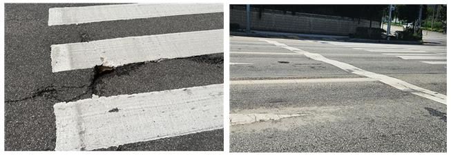 따라서 하중이 집중되는 구조적 특성상 지속적인 고온으로 아스팔트 포장이 파이고 솟거나 갈라지는 현상이 발생하기 쉽다.