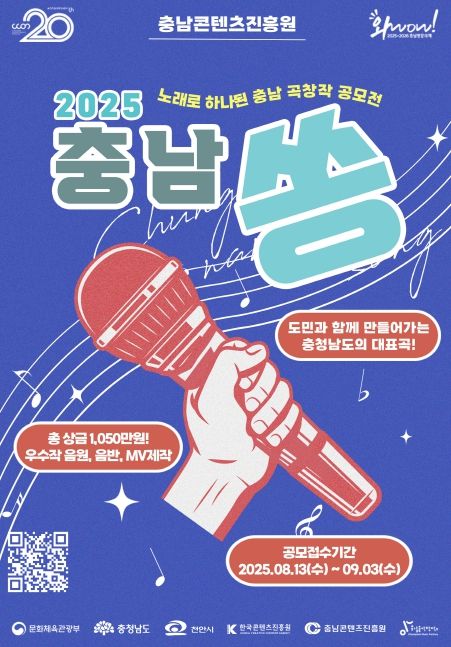 진흥원 김곡미 원장은 “이번 공모전은 단순한 음악 경연을 넘어, 충청남도의 문화적 자산을 음악이라는 장르로 재해석하는 시도”라며 “충남의 매력을 담은 창작 음악이 도민은 물론 전국에 널리 퍼질 수 있는 기회가 될 것”이라고 전했다.