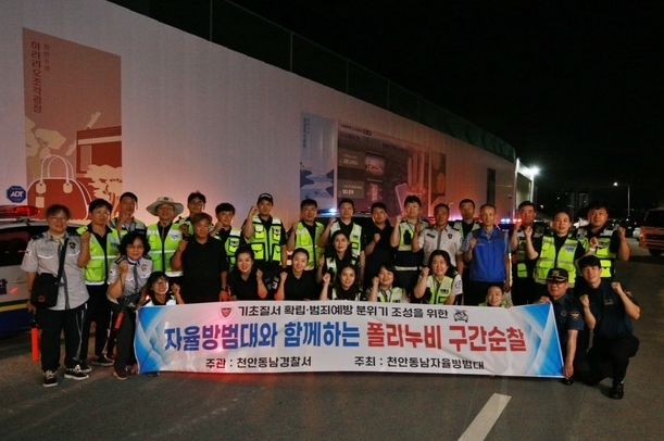 (도민방송=충남) 문성호기자 | 천안동남경찰서는 지난 13일 여름철 범죄예방활동으로 천안시 동남구 자율방범대 8개 지대, 약 40명의 자율방범대원과 합동하여 구간 차량순찰을 진행했다고 밝혔다.