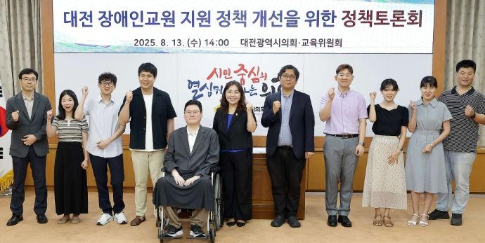 (도민방송 정연호기자) 대전시의회는 13일 시의회 소통실에서 김민숙 의원(더불어민주당, 비례대표) 주재로 ‘대전 장애인교원 지원 정책 개선을 위한 정책토론회'를 개최했다.