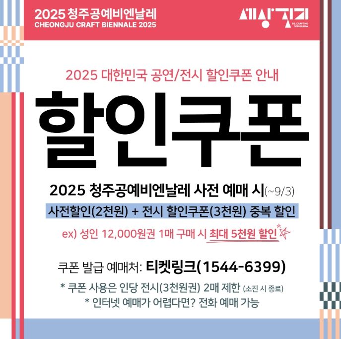 이 중 2025 청주공예비엔날레에는 전시 쿠폰이 적용돼 3천원을 할인 받을 수 있다.