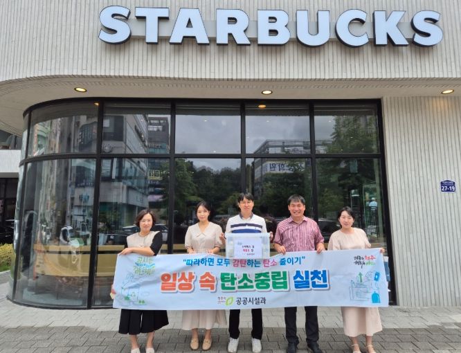 공공시설과는 부서 내 일회용컵 전용 수거함을 설치하고, 전 직원 참여를 독려해 스타벅스 일회용컵 140개를 모아 반납했다.