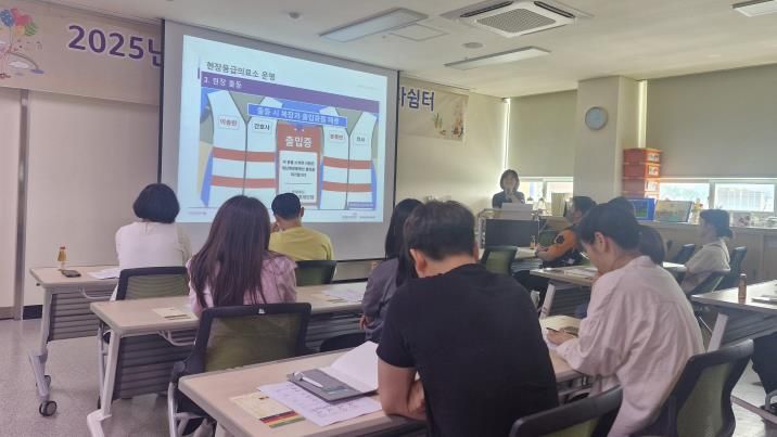 이번 교육에는 보건소 신속대응반으로 편성된 직원 20명이 참석했다. 중앙응급의료센터 소속 김영은 간호사가 재난 발생 시 보건소의 역할, 응급환자 중증도 분류, 응급조치 및 이송 과정 등을 이론과 실습을 통해 체계적으로 교육했다.