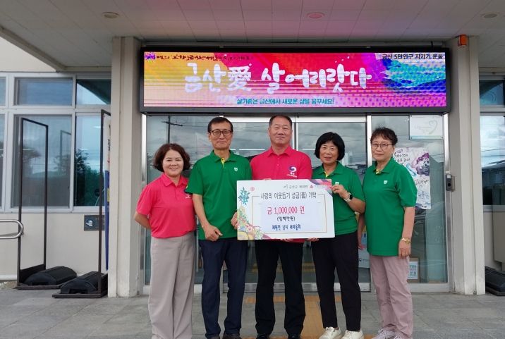 (도민방송=충남) 문성호기자 | 금산군 제원면새마을남녀도자회는 지난 13일 지역 내 어려운 이웃을 돕기 위해 100만 원을 제원면행정복지센터에 기탁했다.
