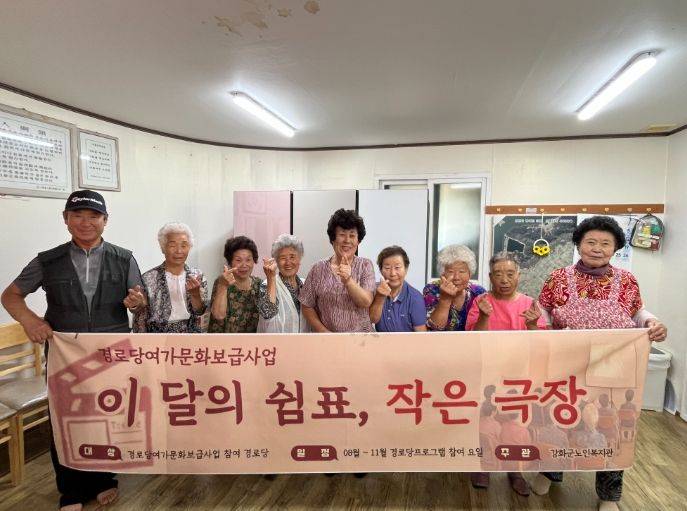 (도민방송=충남) 문성호기자 | 강화군노인복지관이 지난 8일부터 삼산면 하리경로당을 시작으로 경로당 여가문화 보급 사업의 일환인 ‘이달의 쉼표, 작은 극장’ 프로그램을 운영한다고 밝혔다.