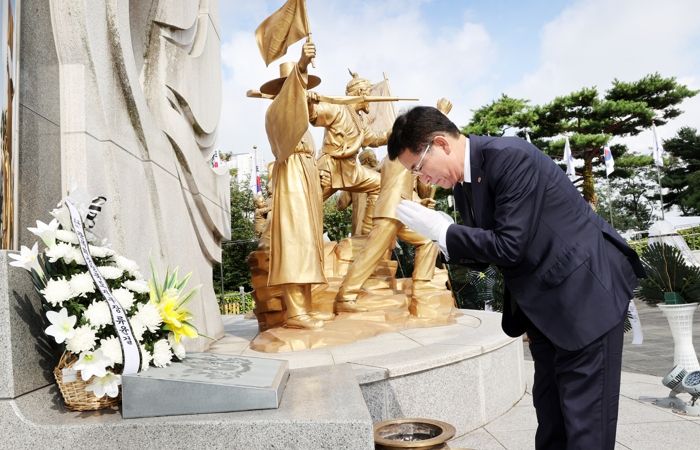 이날 윤건영 충청북도교육감과 도교육청 간부공무원은 3.1공원 내 항일독립운동기념탑과 애국지사 5인 동상을 찾아, 조국의 광복을 위해 목숨을 바치신 애국선열을 기리는 헌화와 묵념을 올렸다.