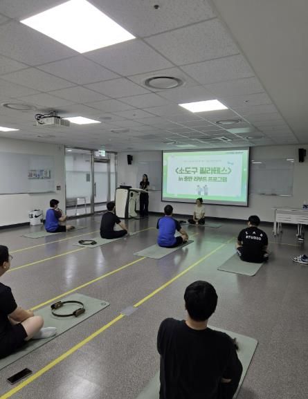 이번 과정은 지난 11일부터 매주 근무 시간 이후인 오후 6시부터 사내 교육 공간을 활용해 진행되며 10회 과정의 직장인 필라테스 과정을 실시하고 있다.