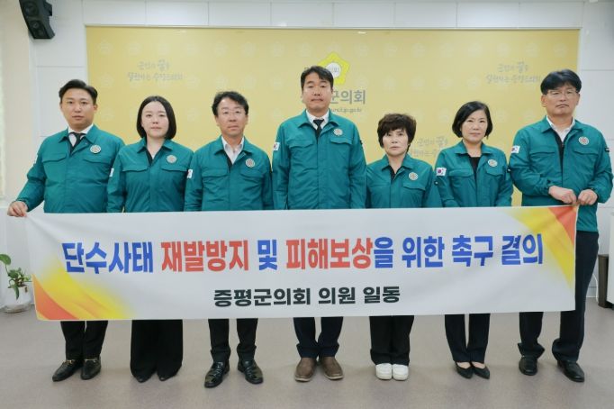 증평군의회 의원들은 결의문을 통해“지난 5일 송수관로 파손으로 인해 일어난 대규모 단수 사태로 1만 8,000여 가구가 무더위 속에서 일상생활에 큰 불편을 겪었고 특히, 자영업자 등 소상공인들은 물부족으로 영업을 중단하며 심각한 영업손실을 보았다.”며 “한국수자원공사는 임시관로와 송수관을 연결하는 복구공사를 완료해 수돗물 공급을 정상화했지만, 이는 임시방편 조치에 불과하고 단일 송수관에 의해 물을 공급받고 있는 구조적 한계로 단수사태는 언제든 다시 터질 수 있는 시한폭탄과 같다.”고 말했다.