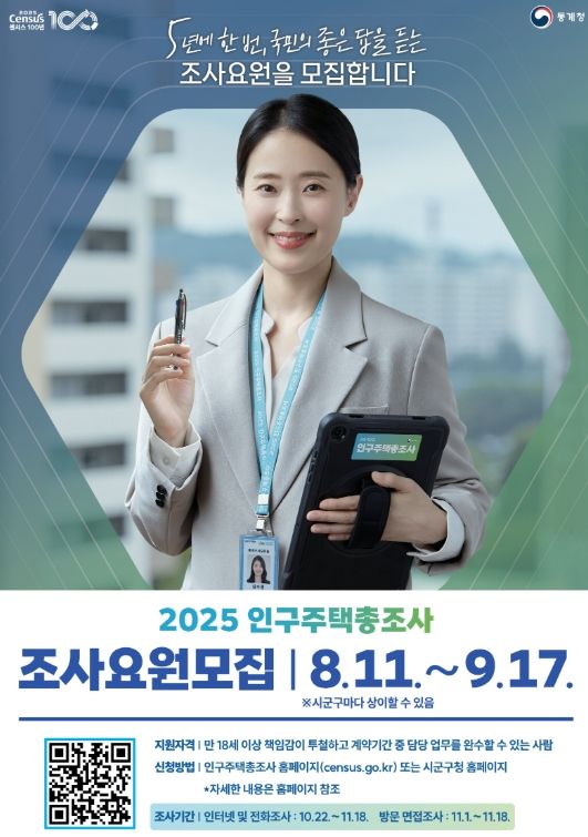 (도민방송=충남) 문성호기자 | 부여군이 ‘2025 인구주택총조사’ 업무를 수행할 조사요원을 모집한다고 18일 밝혔다.