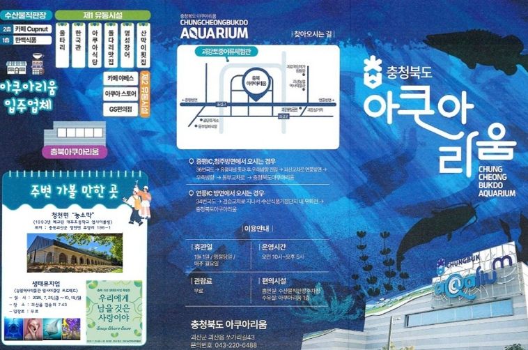 특히, 이번 축제에서는 충북아쿠아리움 주변의 가볼 만한 곳으로 괴산군 농업역사박물관을 새롭게 리모델링한 생태뮤지엄, 청천면 폐교를 업사이클링한 농소막 등 괴산군 주요 관광지를 리플릿(200부)에 함께 기재하여 새로 제작한 후 홍보할 예정이다.
