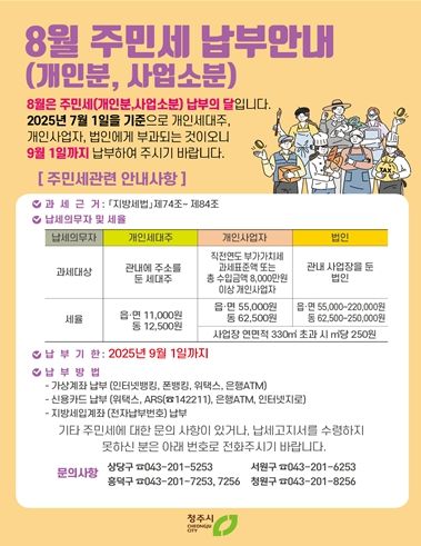 주민세 개인분은 7월 1일 현재 청주시에 주소를 둔 개인 세대주에게 부과된다.