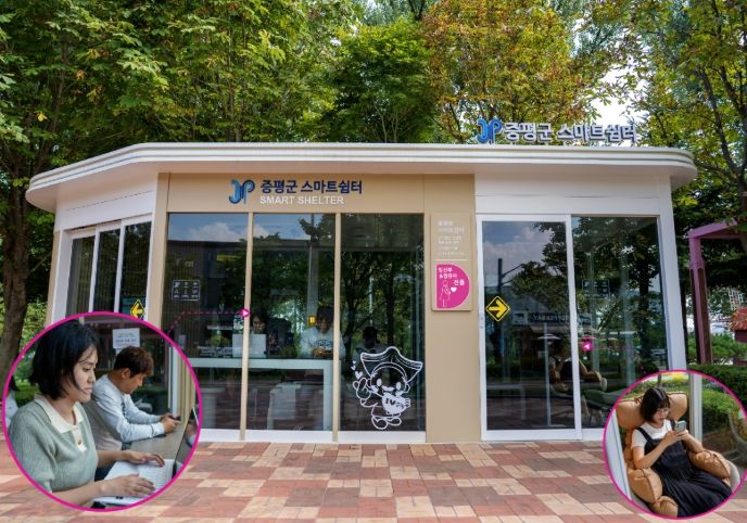 19일 군에 따르면, 이번에 설치된 생활밀착형 스마트쉼터는 지금까지 사례가 없던 군청사, 하천 산책로, 터미널 등 주민 생활권 3곳에 자리 잡았다.