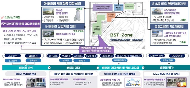 또한, 2026년부터는 BST-ZONE 내 '전고체전지 소재개발‧제조 지원센터', '빅데이터 기반 공정고도화 플랫폼'과 오창테크노폴리스에 'EV용 배터리 화재안전성 평가센터', 오창 제1 과학산업단지에 '모빌리티용 배터리팩 제품화 지원센터' 등이 순차적으로 준공될 예정이다.