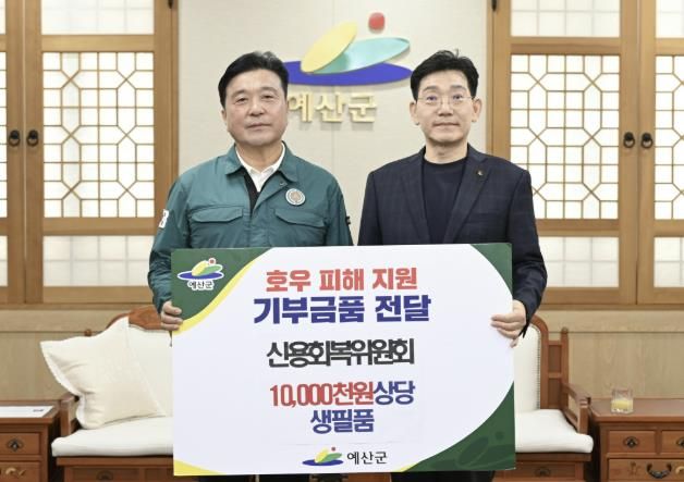 (도민방송=충남) 문성호기자 | 예산군은 신용회복위원회 대전충청지역본부로부터 집중호우로 피해를 입은 이재민을 위한 1000만원 상당의 생필품을 기탁받았다고 19일 밝혔다.