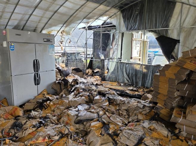 소방서에 따르면 신고자는 이날 오후 2시 30분께 옆 비닐하우스에서 농사 작업 중 타는 냄새를 맡고 해당 비닐하우스 확인에 나섰다.