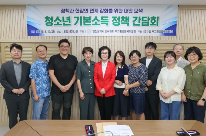 (도민방송=충남) 문성호기자 | 인천 동구의회 복지환경도시위원회(위원장 장수진)는 지난 19일 동구의회 의원세미나실에서 『청소년 기본소득 정책 간담회』를 개최했다.