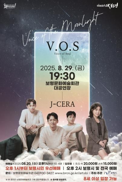 (도민방송=충남) 문성호기자 | 보령시는 29일 오후 7시 30분 보령문화예술회관 대공연장에서 V.O.S · J-CERA ‘Voice of the Moonlight’ 콘서트를 개최한다고 밝혔다.