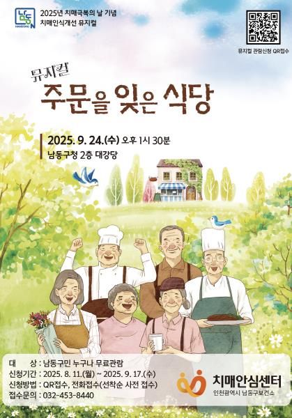 (도민방송=충남) 문성호기자 | 인천시 남동구는 제18회 치매극복의 날(9월 21일)을 맞아 치매에 대한 인식을 개선하고 치매 친화적인 사회 분위기 조성을 위해 뮤지컬‘주문을 잊은 식당’을 개최한다고 20일 밝혔다.
