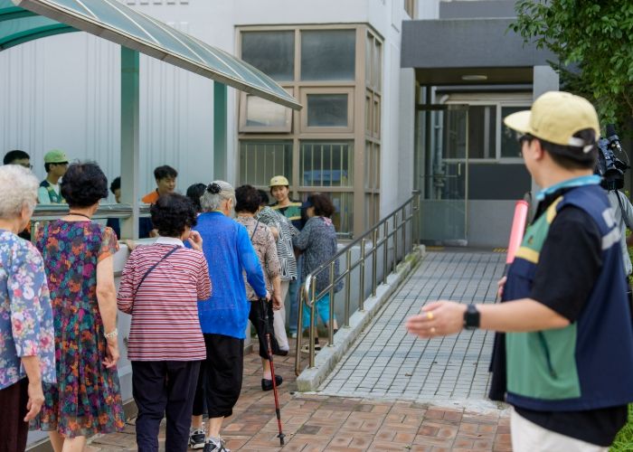 어린아이들을 인솔하는 교사와, 안내방송에 맞춰 질서 있게 이동하는 주민들의 모습이 실제 상황을 방불케 했다.