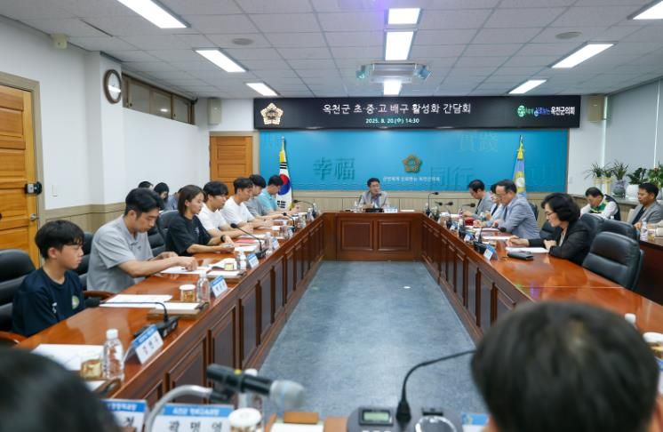간담회에는 추복성 의장을 비롯해 옥천군 관련 부서 공무원, 관내 초·중·고 배구팀 지도자, 학생 선수들이 참석해 배구팀 운영과 관련한 다양한 현안을 논의했다.