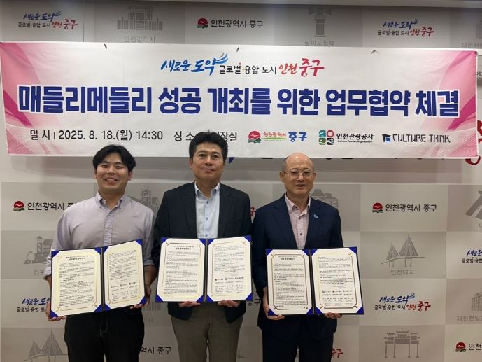 (도민방송=충남) 문성호기자 | 인천관광공사는 인천광역시 중구, 컬쳐띵크㈜와 함께 지난 18일‘매들리 메들리(MADLY MEDLEY) 성공 개최를 위한 업무협약’을 체결했다고 밝혔다.