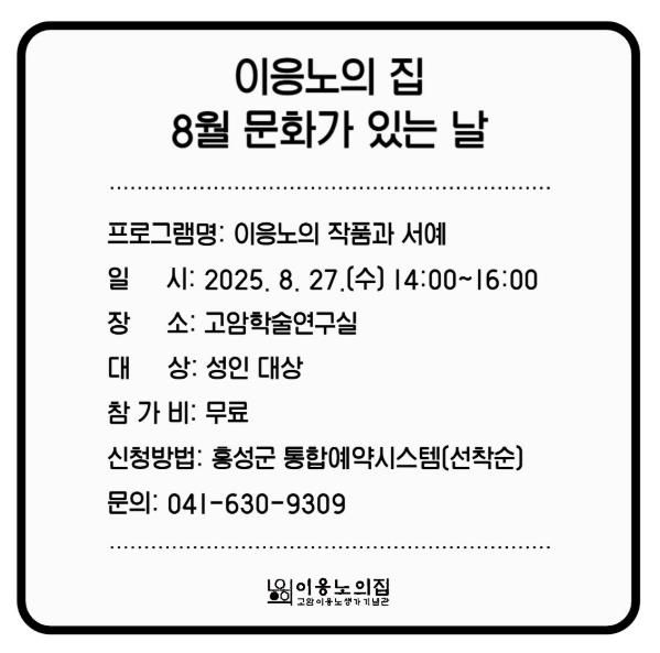 이번 행사는 홍성군 통합예약시스템을 통해 사전 신청할 수 있으며, 오전 10시 도슨트 해설을 시작으로, 오후 2시에는 이응노 화백의 작품 세계를 직접 체험하는 서예 프로그램이 진행된다. 오후 6시부터 9시까지는 야간개장이 열려, 늦은 시간에도 기념관의 전시와 공간을 감상할 수 있다.