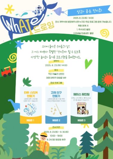 (도민방송 정연호기자) 대덕문화관광재단은 오는 23일부터 30일까지 ‘작은미술관 신탄진에서’ AI 융합 디지털 미술교육 프로그램 ‘whAle-I 드로잉’ 성과전시회를 개최한다고 밝혔다.