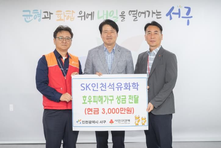 강범석 서구청장은 “따뜻한 손길을 내밀어 주신 SK인천석유화학 임직원분들에게 깊은 감사를 드린다”라며 “이번 지원이 실의에 빠진 이재민들에게 큰 용기와 희망이 될 것”이라고 전했다.