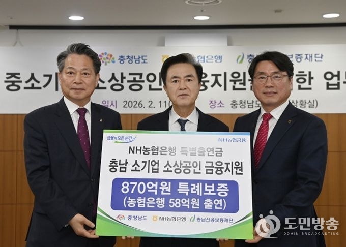 (도민방송 =충남)문성호기자/ 충남도가 고환율·고물가·고금리 등으로 어려움을 겪고 있는 도내 중소기업과 소상공인을 위해 NH농협은행·충남신용보증재단과 손을 맞잡았다.