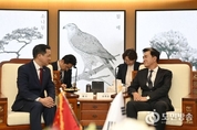 (도민방송 =충남) 문성호기자/ 김태흠 충남도지사는 6일 도청 접견실에서 다이빙(戴兵) 주한 중국대사와 만나 양 지역 간 교류·협력 확대 방안을 논의했다. 이번 접견은 다이빙 대사 부임 이후 처음으로 이뤄진 공식 방문으로, 1992년 한중 외교관계 수립 이후 축적된 양국 간 교류 성과를 토대로 상호 이해와 신뢰를 재확인하고 안정적인 관계 발전 방향을 모색하는 자리로 마련됐다. 이 자리에서 김 지사는 “중국에는 ‘화합이 번영을 만든다’라는 뜻의 ‘화기생재(和氣生財)’라는 말이 있는데 이 말이 오늘날 한국과 중국에 딱 어울린다”라며 “한중 간 인문 교류가 점차 회복되는 가운데, 지방정부 차원의 실질 협력은 양국 관계를 더 안정적으로 뒷받침할 기반이 될 것”이라고 강조했다. 이어 김 지사는 “도는 1993년 허베이성을 시작으로 14개 성(시)정부와 투자통상은 물론, 문화·청소년·환경 등 다방면에서 협력의 역사를 만들어왔다”라면서 “양국 지방정부와 기업들 사이의 협력 강화를 위해 정책적인 노력과 제도적인 뒷받침을 부탁드린다”라고 요청했다. 또 김 지사는 ‘2026년 태안국제원예치유박람회’를 비롯한 도내 주요 국제행사를 소개하고 중국의 많은 관심과 참여를 부탁했다.