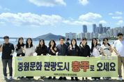 (도민방송 임경희기자) 충주시 명예시민인 안정태 재부산강원도청장년회장이 부산 광안리해수욕장에서 여름 휴가철 피서객을 대상으로 충주 문화·관광 홍보 캠페인을 펼쳤다고 13일 밝혔다. 재부산강원도청장년회원들은 자연과 문화가 어우러진 충주의 대표 여름 피서지인 계명산 휴양림, 수주팔봉, 활옥동굴 등 유명 관광명소를 소개했다. 이와 함께 9월에 열리는‘제53회 우륵문화제’와 이색 체험 프로그램인 ‘장자늪 카누체험’등 충주의 문화·예술행사도 적극 홍보했다. 이날 캠페인에 참여한 회원들은 무더위에도 불구하고 부산 시민과 관광객들에게 충주의 매력을 알리며 구슬땀을 흘렸다. 안정태 회장은 “올여름 더위를 잊게 해줄 천혜의 여름 휴양지 충주에서 자연과 함께하는 힐링 여행을 즐기며 재충전의 시간을 보내시길 바란다”라고 말했다. 한편, 안정태 회장은 ‘2017 충주 전국체전’의 전방위적 홍보로 대회 개최에 기여한 공로를 인정받아 같은 해 ‘충주시 명예시민’으로 선정됐으며, 이후 부산 지역 축제장과 관광지 등에서 충주의 관광지, 축제, 농·특산품을 알리는 활동을 꾸준히 이어오고 있다. [뉴스출처 : 충청