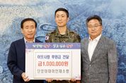 (도민방송 임경희기자) 충북 단양군은 지난 8일 제3105부대 단양대대 이인재 소령이 이웃사랑 후원금 100만 원을 기탁했다고 밝혔다. 이번 후원금은 충북사회복지공동모금회를 통해 경제적 어려움을 겪는 단양군 내 취약계층을 지원하는 데 사용될 예정이다. 이인재 소령은 “이번 후원금이 어려운 이웃에게 작은 힘이 되길 바라며, 앞으로도 소외계층을 위한 지원을 꾸준히 이어가겠다”고 말했다. 한편, 이 소령은 2020년 코로나19 확산 당시 대구‧경북 지역 성금 100만 원 기부를 시작으로, 2022년 기부 캠페인을 통한 헌혈증 100장 기부, 이웃돕기 성금 전달 등 지속적인 사회공헌 활동을 이어오고 있다. [뉴스출처 : 충청북도 단양군]