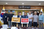 (도민방송=충남) 문성호기자 | 논산시는 관내 농업인 단체인 논산수박연구회 영농조합법인(대표 김종일)에서 장학금 300만 원과 1,050만 원 상당의 수박 1,500통을 기탁했다고 밝혔다. 장학금은 (재)논산시장학회로 전달됐으며, 수박은 관내 사회복지시설 거주자와 저소득층에게 지원될 예정이다. 논산수박연구회 영농조합법인은 2001년부터 공동선별 규격 출하를 선도한 농업인 조직이다. 현재 영농조합법인 소속 36개 농가가 55ha의 농지에서 수박을 재배해 대형마트 및 도매시장에 출하하고 있으며, 논산수박연구회 홈페이지를 통해 온라인 직거래 시장에도 적극 진출하고 있다. 김종일 대표는 “지역에서 함께 살아가는 만큼 이웃과 나눔을 실천하는 일은 우리의 당연한 책임”이라며 “앞으로도 회원들과 함께 나눔과 상생의 가치를 실천하겠다”고 기탁 소감을 밝혔다. 백성현 논산시장은 “바쁜 영농 일정 속에서도 미래 세대를 위한 따뜻한 나눔에 동참해 주신 수박연구회 김종일 대표님과 회원들께 감사드린다”며 “속이 꽉 찬 수박처럼 정성과 사랑이 가득 담긴 나눔이 지역사회를 더욱 건강하게 만드는 밑거름이 되고 있다