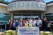 도민방송 문성호기자 | 서천군장애인종합복지관은 지난 1일 ㈜코츠로 부터 약 1,300만 원 상당의 ‘서천쌀’을 정기 후원받았다고 밝혔다. 이번 후원은 매월 20kg 쌀 20포씩 지원될 예정이며, 복지관을 이용하는 장애인들의 건강하고 균형있는 점심식사를 위해 적극 지원하기로 결정 됐다. 김용수 ㈜코츠 대표는 “장애인들이 건강한 식사를 할 수 있도록 돕고 싶다며, 기한을 두지 않고 지속적인 지원을 이어갈 것”이라고 밝혔다. 임향이 서천군 장애인종합복지관 관장은 “최근 농수산물 가격 상승으로 급식 운영에 어려움이 많았는데, 우리지역 생상품인 서천 쌀이 큰 힘이 된다.”며 감사의 뜻을 전했다. 한편 서천군 장항읍에 본사를 둔 비금속광물제품 제조기업 ㈜코츠는 지역사회와의 상생을 위한 다양한 사회공헌 활동을 전개해 오고 있다. [뉴스출처 : 충청남도서천장애인종합복지관]