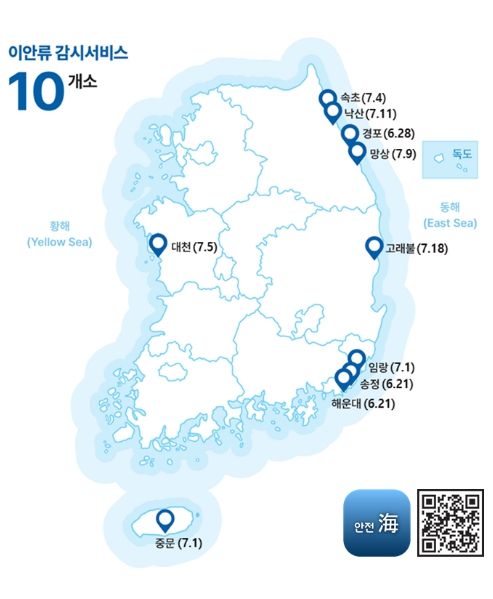 안전정보는 소방, 해경 등 관계기관과 해수욕장 관할 지자체 관계자에게 전용 플랫폼을 통해 실시간으로 제공되며, 일반 국민은 모바일 앱 ‘안전해(海)’와 국립해양조사원 누리집에서 확인할 수 있다.