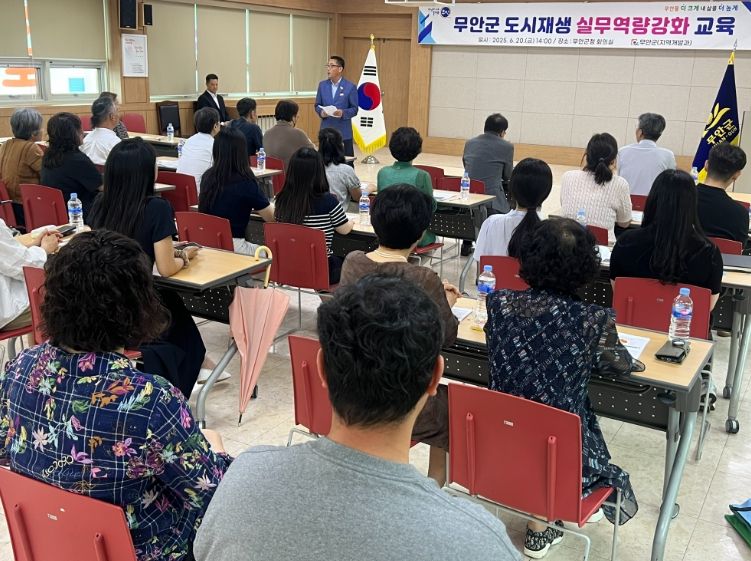 도민방송 정연호기자 | 전남 무안군은 지난 20일 군청 본관 3층 회의실에서 주민 등 50여명이 참석한 가운데 ‘도시재생 실무역량 강화 특별 강연’을 개최했다.