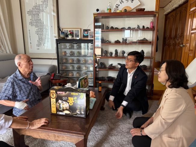 도민방송 정연호기자 | 현원돈 제주시 부시장은 6월 23일 국가유공자 고경윤(1933년생) 씨와 유족 강철수(1955년생) 씨의 자택을 방문해 감사의 마음을 전하고 위문품을 전달했다.
