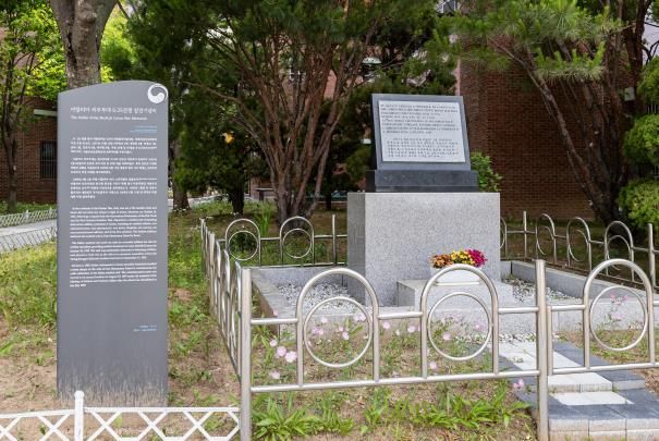 1989년 6월 2일 당시 주한 이탈리아 대사였던 그라치엘라 심볼로띠(Graziella Simbolotti)는 이탈리아 의무부대의 숭고한 헌신을 기리기 위해 부대 주둔지였던 서울우신초등학교 교사 벽면에 참전 기념 표석을 설치했다. 이후 해당 건물이 철거되면서 1999년 8월 구령대 옆 화단으로 기념비가 이전됐고, 2013년 5월에는 국가보훈처(현 국가보훈부) 주도로 현 위치에 재설치됐다.