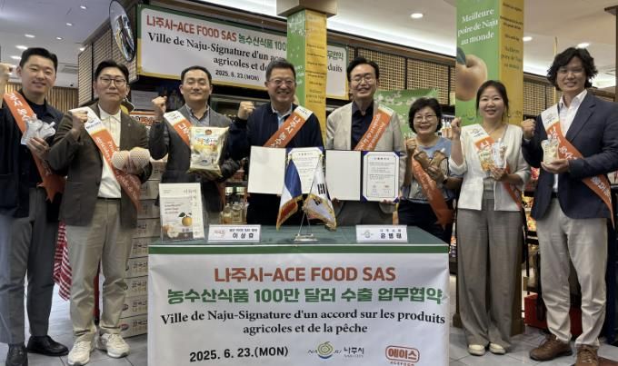 나주시는 23일(현지시간) 프랑스 파리에 있는 에이스마트 루브르점에서 현지 유통업체인 에이스푸드(ACE FOOD SAS)와 농수산식품 수출 협약을 체결했다고 24일 밝혔다.