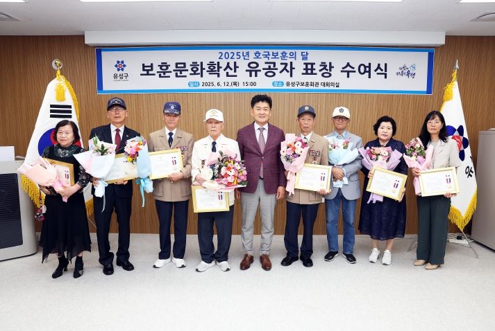 도민방송 정연호기자 | 대전광역시 유성구의회 김동수 의장은 12일, 호국보훈의 달을 맞아 유성구보훈회관 대회의실에서 지역사회의 보훈문화 확산에 기여한 유공자 8명에게 표창패를 수여했다.