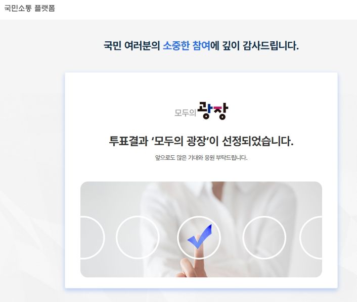 ‘모두의 광장’은 국민과 정부 간 양방향 소통을 실현하는 AI기반의 혁신적 플랫폼으로, 지난 6월 18일에 개통해 운영 중에 있다.