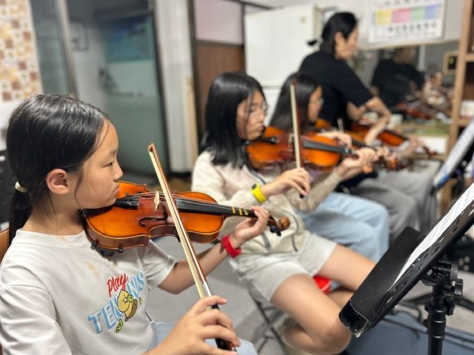 영동청소년오케스트라는 영동에서 유일한 청소년 중심 오케스트라이다. 초등학생부터 고등학생까지 영동읍과 각 면에서 바이올린, 비올라, 첼로, 콘트라베이스, 플루트, 클라리넷, 드럼 등 다양한 악기를 배우기 위해 아이들이 모여든다. 평소 학기중에는 평일과 주말 저녁에 주 1~2회 레슨을 운영하는데, 방학을 맞아 집중 학습에 들어간다.