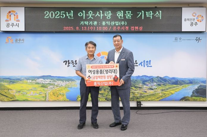 (도민방송=충남) 문성호기자 | 공주시는 지난 13일 시청 집현실에서 홍익산업(주)(대표 김동엽)가 관내 저소득층 여학생을 위해 100만 원 상당의 생리대 세트를 기탁했다고 밝혔다.