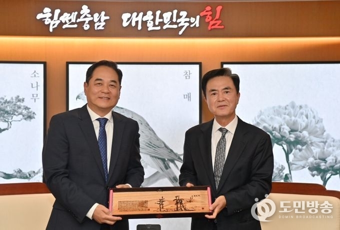 김태흠 지사는 30일 지방정부 교류회의 참석차 도를 방문한 양완밍 중국인민대외우호협회장과 만나 지방외교 협력 방안 등을 논의하고 문화·예술 교류의 시간을 가졌다.