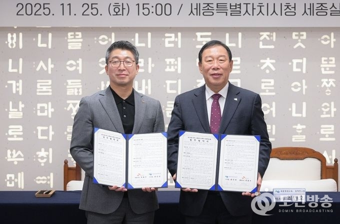 (도민방송 =세종) 임경희기자/ 세종특별자치시와 (재)세종평생교육·정책연구원이 25일 시청 5층 세종실에서 SK바이오텍㈜(대표이사 박용우)와 지역 인재의 해외 유학 지원을 위한 업무협약을 체결했다.