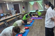 (도민방송=충남) 문성호기자 | 인천시 중구 신흥동 지역사회보장협의체(공동위원장 함혜경, 심규홍)는 협의체 위원들을 대상으로 지난 12일 동 행정복지센터 2층 회의실에서 ‘심폐소생술 교육’을 실시했다고 밝혔다. 대한적십자사 소속의 전문 강사(이지연 강사)가 나서 △심정지 환자 발생 시 대처 요령 △심폐소생술(CPR) 이론·실습 △자동심장충격기(AED) 사용법을 사례 중심으로 설명하며, 전문적이고 흥미롭게 교육을 진행했다. 또한, 실제 상황을 가정해 △현재 상태 체크 △주변인에게 119 신고 요청 △심부 압박 △자동심장충격기 사용 등 배운 내용을 교육용 마네킹을 활용하며 직접 체험·실습하는 시간을 가졌다. 함혜경 민간공동위원장은 “이번 교육을 통해 실제 위급 상황 발생 시 적절한 응급 처치로 골든타임을 확보하는 게 중요하다는 것을 알게 됐다”라며 “실습 중심 교육으로 실제 상황에서 유용하게 활용할 수 있을 것 같다”라고 전했다. 심규홍 신흥동장도 “이번 교육으로 협의체 위원들이 위급 상황에서 생명을 살릴 수 있는 자신감과 힘을 얻었길 바란다”라며 “앞으로 교육 대상을 확대해 더 많은 주민이 응급 처