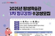 도민방송 문성호기자 | 인천 동구는 오는 11일~22일까지 2025년 3차 정규강좌 수강생을 모집한다고 밝혔다. 이번 정규강좌는 총 13개 강좌로 구성됐으며, 지역 주민의 다양한 관심사를 고려하여 전문성 향상을 위한 자격 과정, 실용성과 취미, 창작 등 다양한 주제를 골고루 담아냈다. 대표 강좌로는 ▲생활영어 ▲동화구연지도사 자격 과정 ▲규방공예 등이 있으며, 특히 모든 강좌를 초보자도 부담없이 참여할 수 있도록 난이도를 조정해 모든 연령층이 수강이 가능하도록 구성했다. 수강료는 전액 무료이며, 일부 강좌에 따라 재료비 및 교재비는 학습자 본인 부담이다. 수강 신청은 동구평생학습관 홈페이지를 통해 선착순 접수로 진행된다. 김찬진 동구청장은 “주민 의견을 반영한 맞춤형 학습 프로그램을 지속적으로 발굴하여 동구평생학습관이 지역 밀착형 평생학습 거점으로 자리매김할 수 있도록 다양하고 전문적인 강좌를 확대해 나가겠다”고 말했다. 기타 자세한 사항은 동구 평생학습관 홈페이지 공지 사항을 참고하거나 평생학습관으로 문의하면 된다. [뉴스출처 : 인천시동구]