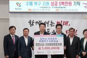 도민방송 문성호기자 | 인천광역시군·구의회의장협의회는 지난 5일, 충남 당진시청을 방문하여 당진시장,당진시의회의장 등이 참석한 성금 기탁식에서 당진시 집중호우 피해복구 지원을 위한 성금 500만원을 당진시복지재단을 통해 기탁했다. 기탁식에는 이의명 협의회장(옹진군의회 의장), 이종호 감사(중구의회 의장), 송승환 사무총장(서구의회 의장), 신정숙 의장(계양구의회 의장)이 참석했으며, 전경애 부회장(미추홀구의회 의장), 유옥분 의장(동구의회 의장), 박현주 의장(연수구의회 의장), 이정순 의장(남동구의회 의장), 안애경 의장(부평구의회 의장), 한승희 의장(강화군의회 의장)이 뜻을 함께했다. 이번 성금 기탁은 인천광역시군구의회의장협의회 7월 월례회의에서 의원총회 행사에 사용할 예산 500만원을 수해로 고통받는 이재민들을 위한 성금으로 기탁하자는 안건에 대해 전원 찬성으로 추진됐으며, 피해 이재민들에 대한 깊은 위로와 조속한 일상 회복에 대한 희망을 담았다고 밝혔다. 특히, 기탁식에 참석한 이의명 협의회장은 “집중호우로 인해 주거와 삶의 터전을 잃고 많은 불편을 겪고 계신 당진시 주민들께 심심한 위로의 말씀을 드리
